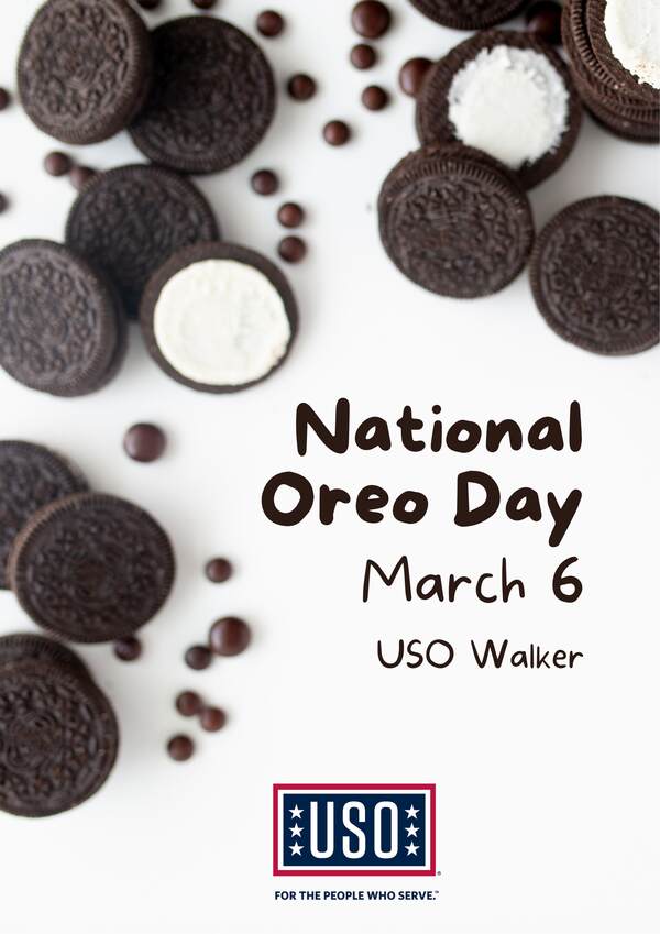 In celebration of National Oreo Day, the USO Camp Walker Center will be handing out Oreo cookies during the lunchtime rush from 11:30 a.m. to 1:00 p.m. on March 6th.