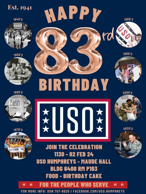Come join us as we celebrate 83 years of service to our Service Members. We will have Birthday Cake and a small reception with food and drink for our guests.